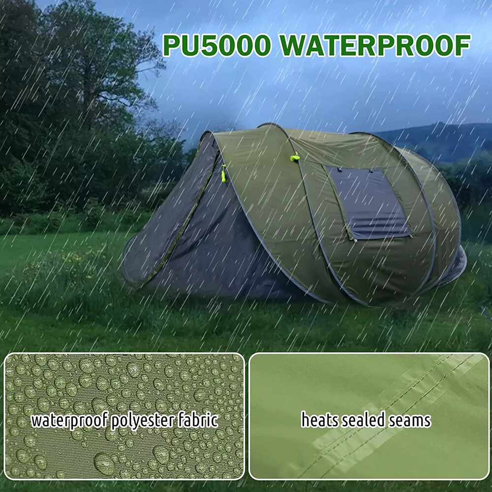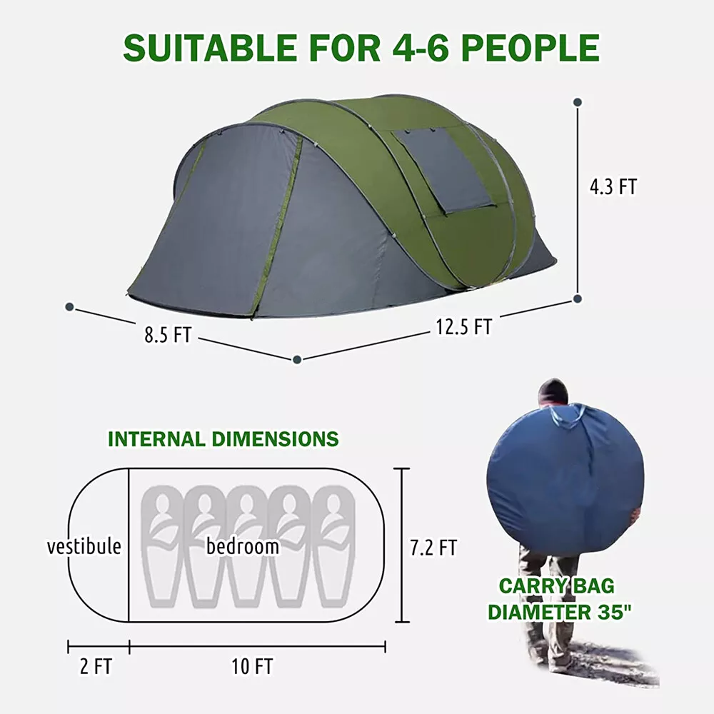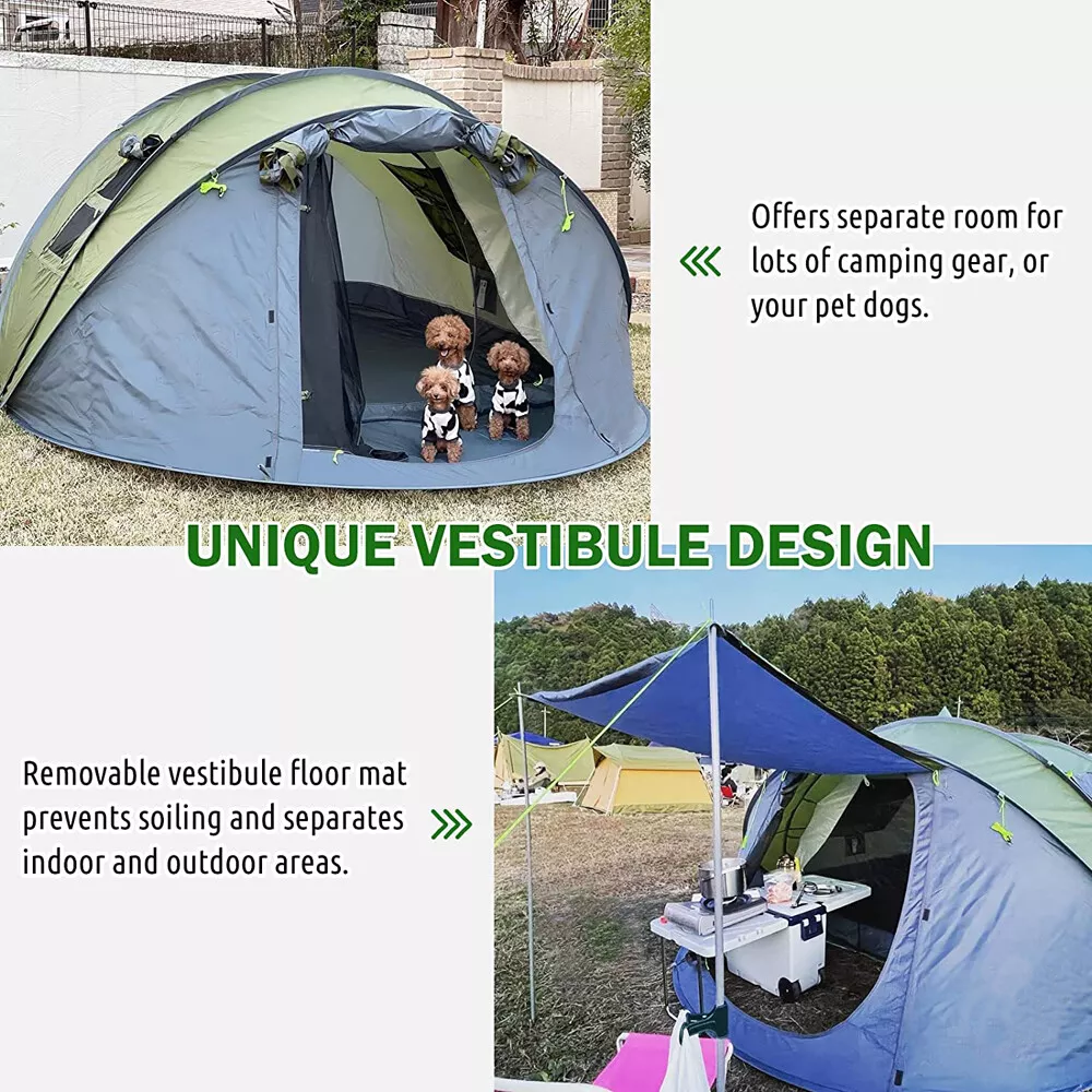 Instant Pop-Up Camping Tent with Vestibule, Front & Back Doors, Spacious for 4-6 People, Waterproof & Windproof, Ventilated for Comfortable Outdoor Adventures